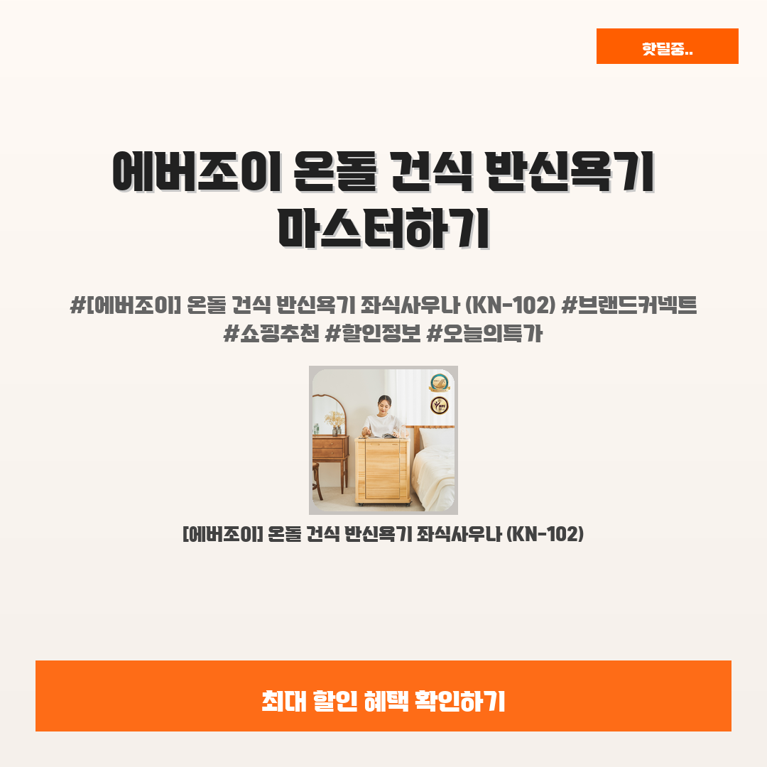 🛍️ 이 포스팅은 네이버 쇼핑 커넥트 활동의 일환으로,판매 발생 시 수수료를 제공받습니다.오늘 소개할 제품은 단연코,바로 에버조이 온돌 건식 반신욕기 좌식사우나 (KN-102)입니다!요즘 일상에 지치고 스트레스가 쌓인 여러분, 집에서도 프라이빗한 스파의 기분을 느껴보고 싶지 않으신가요? 이 제품은 집에서 편안하게 사용할 수 있으면서도, 마치 고급 스파에 온 듯한 기분을 선사해줍니다.저도 처음에는 반신욕이 이렇게 효과적일 줄 몰랐어요. 하지만, 이 제품을 사용하고 나서 그 기분이 얼마나 다양한지를 깨달았답니다! 여러분들도 편안함과 힐링, 그리고 효율적인 스트레스 해소를 직접 느껴보시기를 바랍니다.뿐만 아니라, 현재 36% 할인된 가격에 만나볼 수 있어 가성비까지 뛰어난 선택입니다! 인기 상품인 만큼, 많..